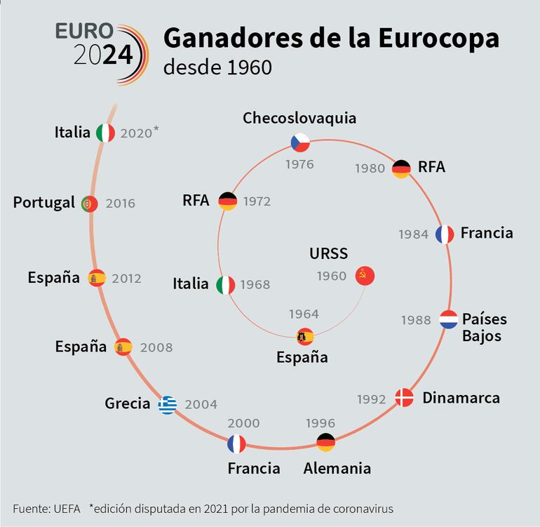Aprobadas las cantidades en el Comité Ejecutivo de la UEFA del pasado 2 de diciembre en Hamburgo, una de las sedes de la fase final, todo se mantiene como en la edición anterior de 2021, con una cifra inicial como cuota de participación para los 24 equipos de 9,25 millones por la presencia en la fase final, que crecerá dependiendo de los resultados.