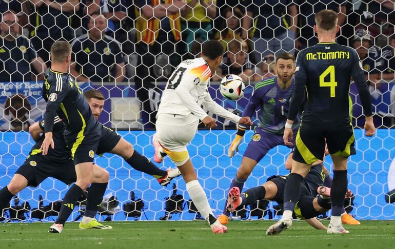 Los goles alemanes fueron marcados por Florian Wirtz (10) , Jamal Musiala (19) , Kai Havertz (45+1 de penal) , Niclas Füllkrug (68) y Emre Can (90+3) , ante una Escocia que perdió por tarjeta roja a Ryan Porteous (44) , pero que salvó el honor con un gol en propia puerta del central alemán Antonio Rüdiger (87) .