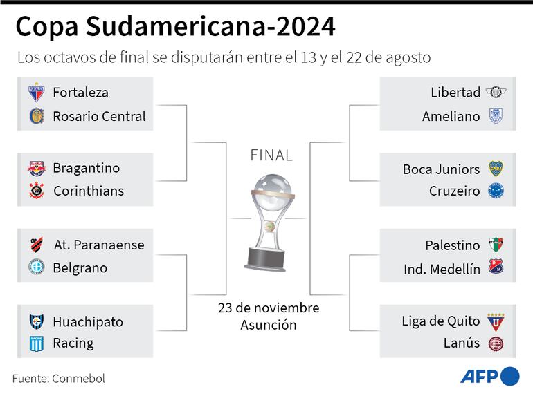 18:00 Huachipato vs. Racing Club, en Chile (estadio a confirmar). Revancha, 20 de agosto en Buenos Aires (18:00).