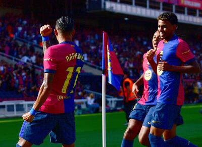 Y es que todo funcionó en el Barça. En ataque y en defensa, en lo colectivo y en lo individual. El faro fue a veces Dani Olmo, otras Lamine Yamal y lució sobre todo Raphinha, autor de un triplete, el primero de su carrera profesional.