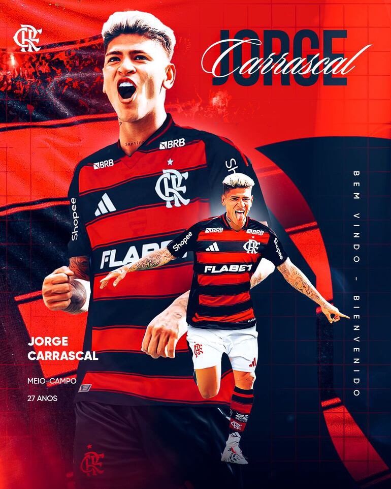Jorge Carrascal, de 27 años, fue el primer refuerzo acordado por el Mengao en la ventana de traspasos abierta en julio y, aunque llegó el miércoles pasado a Río de Janeiro, su ingreso solo fue confirmado en la noche del sábado por el club carioca.