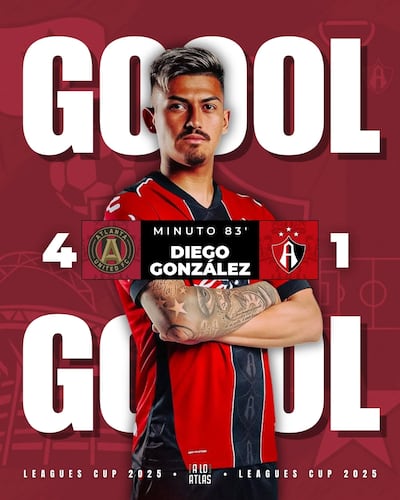 Diego González, de 22 años, originario de Libertad, firmó su segunda anotación en cinco cotejos con el Atlas, al que llegó recientemente proveniente de Lazio de Italia.