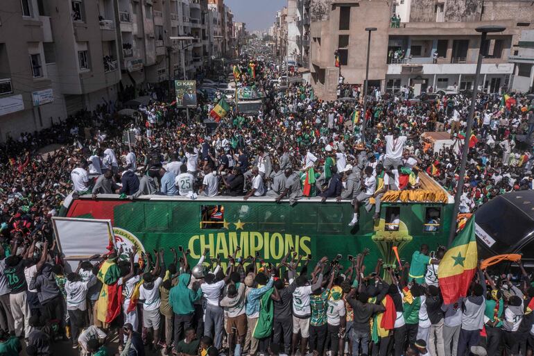 La victoria de Senegal (1-0 en la prórroga) el domingo en Rabat ante Marruecos, la segunda de la historia del país en Copa de África, desató la alegría y el orgullo por todo el país. Los héroes de Rabat iban relevándose para levantar el trofeo sobre un autobús descapotado.