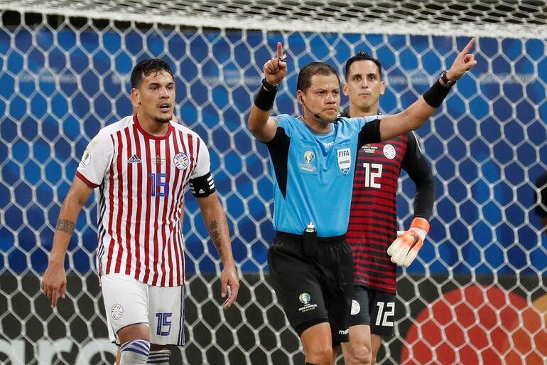 Cuando el equipo paraguayo lamentaba el segundo tanto colombiano, obra de Luis Díaz a los 68’, tras un estupendo pase de James Rodríguez, por el intercomunicador del árbitro Víctor Carrillo le indicaban que recurriera al VAR para cerciorarse de lo acontecido. Mediante la utilización de la tecnología, Carrillo se percató que el balón pegó en el brazo de Díaz antes de que este saque el zapatazo que venció a Roberto Fernández.