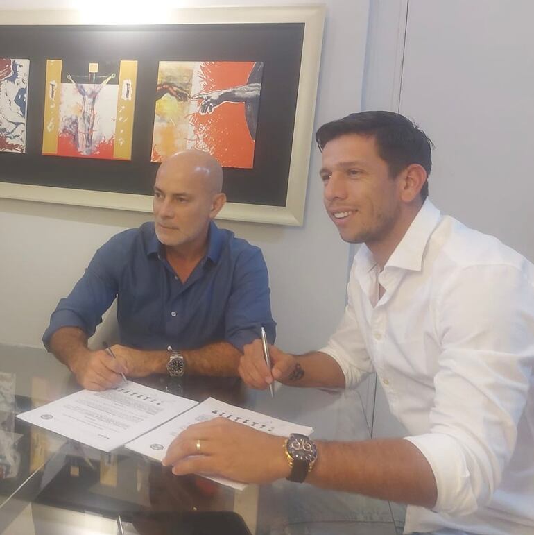 El arquero de 29 años, Juan Ángel Espínola, se reunió este viernes con el presidente de Olimpia, Miguel Cardona, y firmó su nuevo vínculo con el Franjeado por los siguientes tres años.