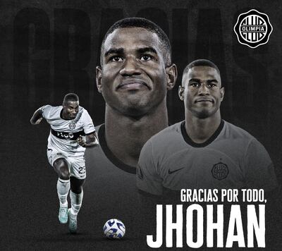 “¡Gracias, Jhohan! ¡Éxitos en lo que se viene, colombiano!”, publicó este lunes el club Olimpia a través de sus redes sociales, anunciando la salida del defensor que no arregló la continuidad de su préstamo.