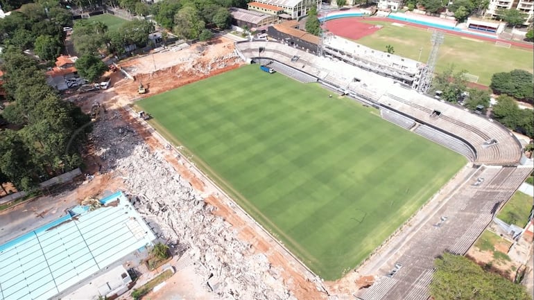 Olimpia ya demolió toda la Gradería Sur y la Platea del viejo Para Uno. Luego de finalizar con los sectores restantes, el Decano empezará las obras de construcción del nuevo Osvado Domínguez Dibb, que será el escenario con mayor capacidad y el más moderno del país como también, la sede del histórico partido en Paraguay del Mundial 2030.
