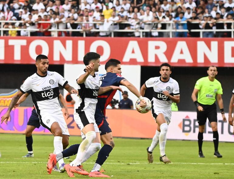 En Olimpia cuestionan la actuación del juez central, Juan Gabriel Benítez, y Carlos Figueredo, quien estuvo en cabina en la revisión de las acciones, reclamando el penal concedido al Ciclón por la falta de Rodrigo Pérez sobre Luis Amarilla, que para ellos no existió.