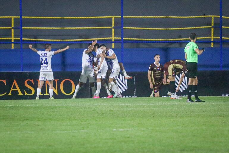 Sportivo Ameliano derrotó por 1-0 a Nacional en el último partido de la fecha 14 del torneo Clausura 2024 del fútbol paraguayo. El triunfo no solo celebró la V Azulada, que descontó puntos con la Academia en la pelea por la Copa Sudamericana 2025, sino también festejó Olimpia, que finalizó la ronda con 4 puntos de ventaja sobre el Tricolor en la lucha por el título. Alberto Contrera, con pasado en el Decano, marcó el gol de la victoria en el Martín Torres.