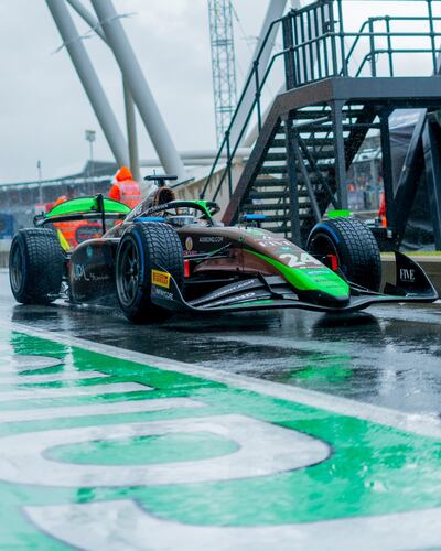 Duerksen, de 20 años, que partió en el 16º lugar de la grilla de salida, tuvo un buen arranque remontando varias posiciones desde que se encendió el semáforo verde del histórico trazado inglés –en el cual debuta–, y cuando pugnaba por una mejor ubicación (por el octavo lugar), se arriesgó con el fin de ingresar a la zona de puntos y el monoplaza, preparado por el equipo alemán AIX Racing, hizo un trompo sobre la pista mojada y, lamentablemente, terminó la competencia en el último lugar de la clasificación general (16 de 22 competidores que iniciaron la carrera).