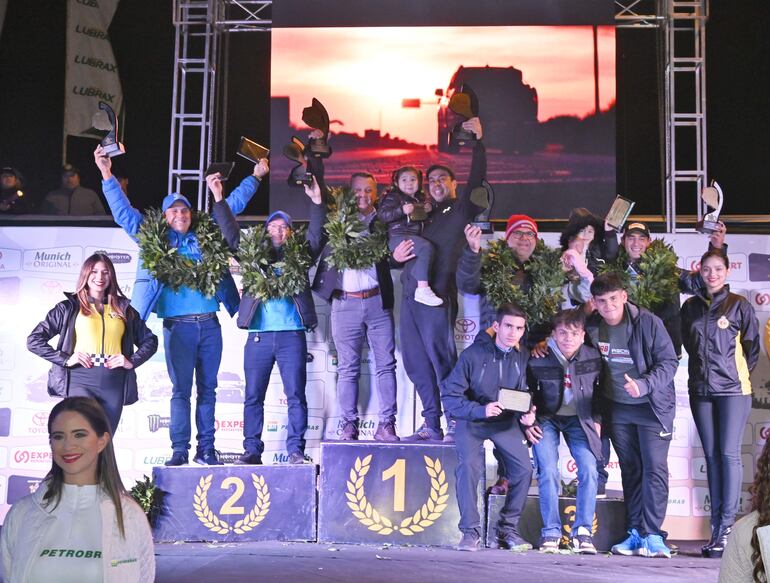 A continuación, pasaron al frente a recibir sus placas “Choferes del Chaco” todas aquellas tripulaciones que consiguieron completar las extremas tres etapas de la carrera y subieron a la rampa final al cierre de la competencia, e inmediatamente después se pasó a premiar a los ganadores clase por clase, y a los mejores ubicados de la clasificación general de la tracción simple e integral, respectivamente.