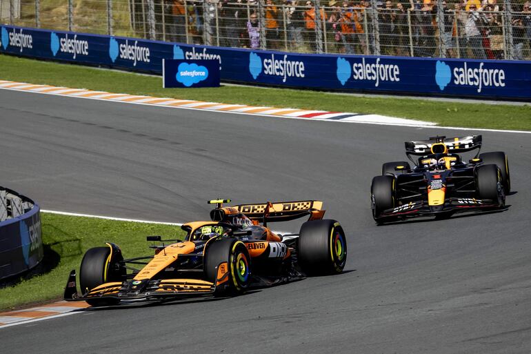 Pero el McLaren, que fue el coche más rápido a lo largo de todo el fin de semana, comenzó a recortar la ventaja de ‘Mad Max’, quien desde el regreso de Zandvoort al calendario de F1 en 2021 había logrado ‘pole’ y victoria en las tres ediciones precedentes.