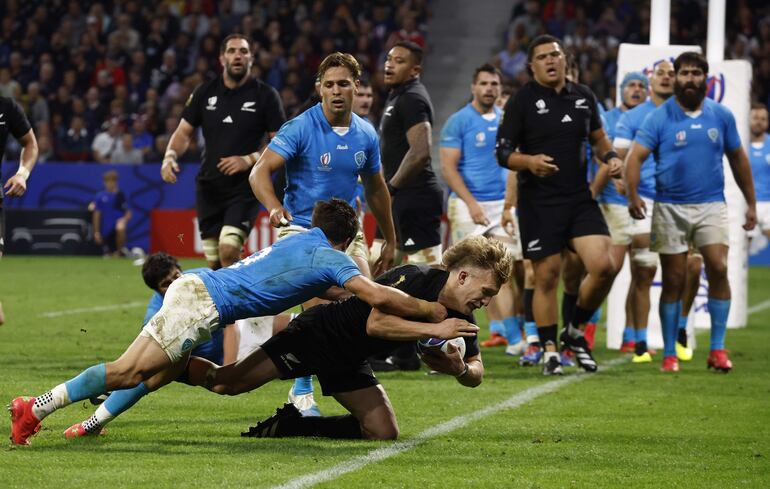 Fainga’Anuku apoyó enseguida el balón y esta vez el número 10 no falló. Nueva Zelanda pasó a ganar 38-0 ante un Uruguay que movió el banquillo e hizo ingresar al apertura del Dax francés Felipe Berchesi, máximo anotador de los Teros en la historia de los Mundiales.