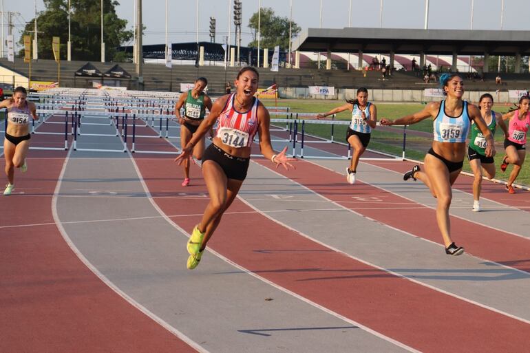 La heptatleta Ana Paula Argüello culminó en el primer lugar en la prueba de los 100 metros vallas femenino y logró romper su propio récord al bajar el tiempo.