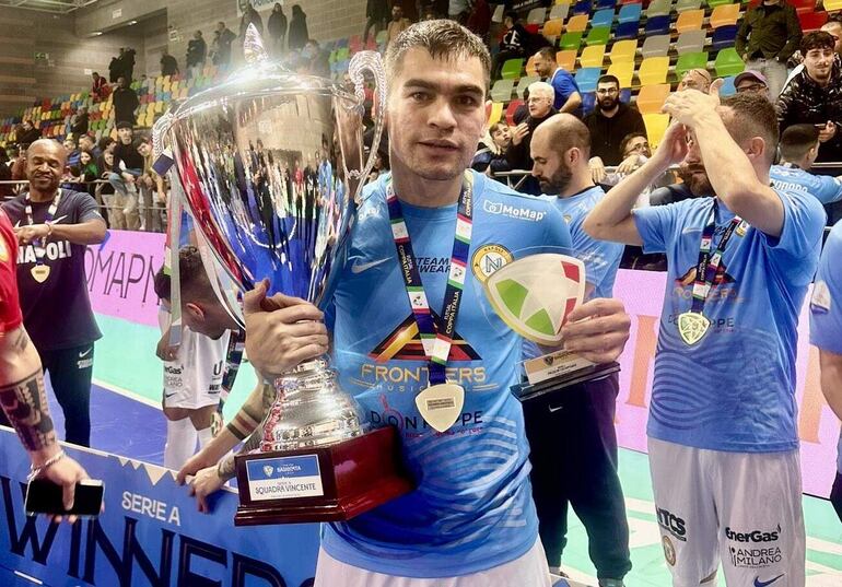 El compatriota Francisco Martínez, uno de los mellizos albirrojos, también se consagró campeón con su team esloveno, el Dobovec Futsal Club.