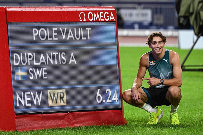 “Todo sumó y pude saltar alto hoy (por ayer)”, añadió. Se trata de la octava ocasión en la que Duplantis, de 24 años, mejora el récord del mundo de la disciplina, que arrebató en febrero de 2020 al francés Renaud Lavillenie.