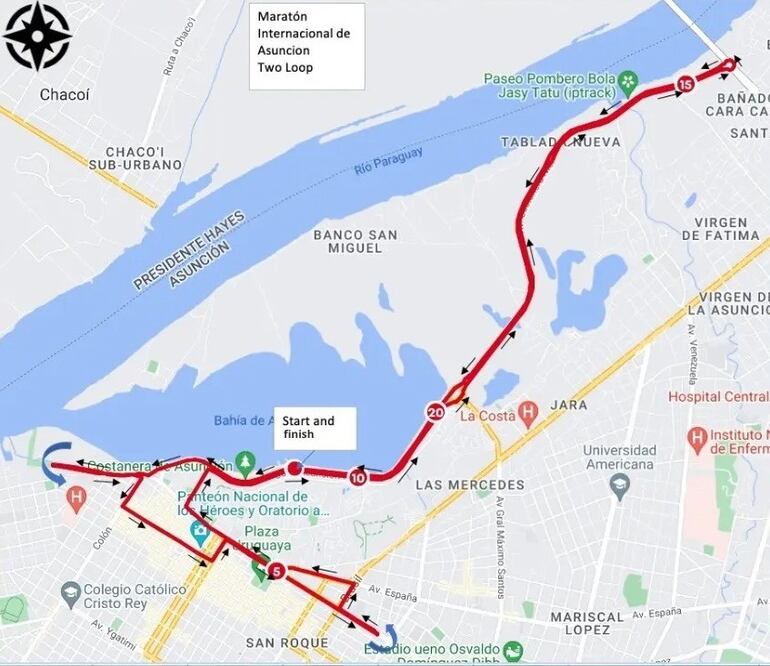 La largada de la competencia se hará en dos horarios, a las 5:00 para las pruebas de 42 y 21 kilómetros y a las 7:00 para la de 7 kilómetros.