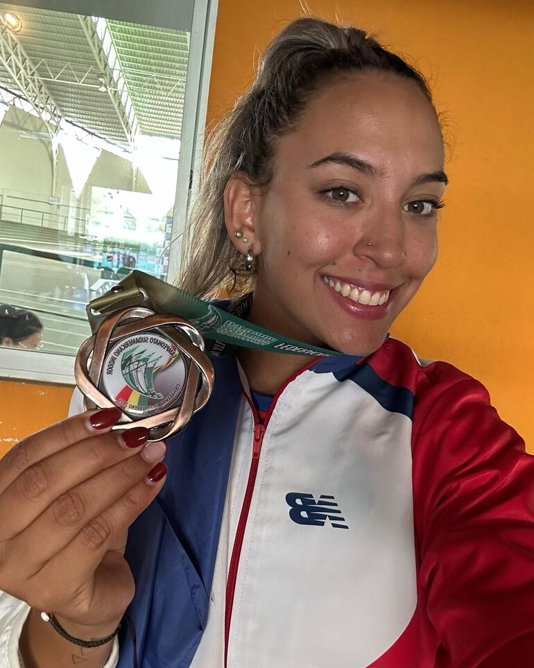 La paraguaya subió al podio en la prueba del pentatlón realizando un total de 3.395 puntos, además de la medalla sudamericana logró un nuevo récord nacional en la prueba del salto largo con un salto de 5.75 m dejando atrás los 5.69 m que pertenecía a justamente a la Pantera Pirelli.