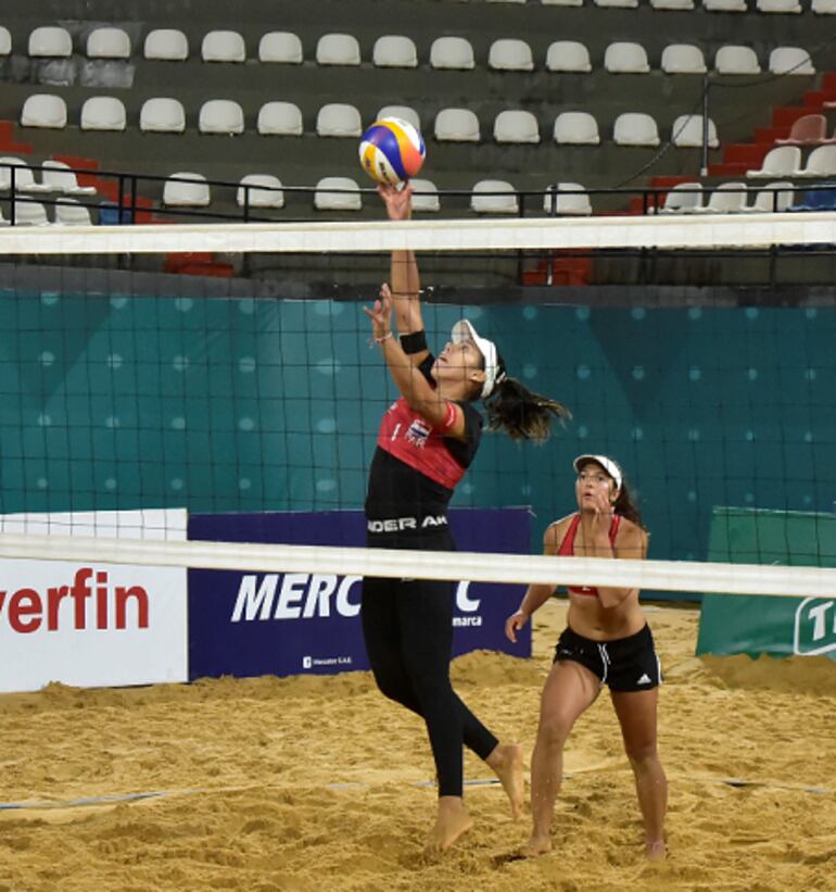 Posteriormente, en un partidazo, nuestra dupla olímpica Michelle Valiente y Giuliana Poletti le ganaron en 3 sets a las peruanas Claudia Gaona y Lisbet Allcca. Los parciales fueron de 22/20, 18/21 y 15/10.