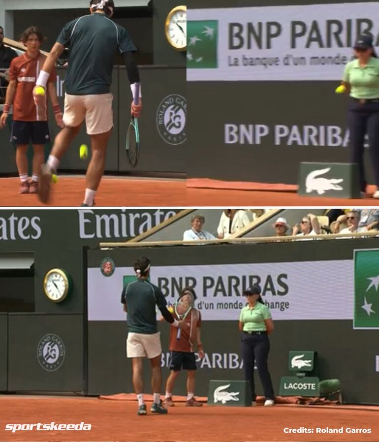 Frustrado, dio un puntapié a una pelota que le había lanzado un recogepelotas y la bola pasó cerca de la cabeza de una juez de línea que estaba en el fondo de la pista.