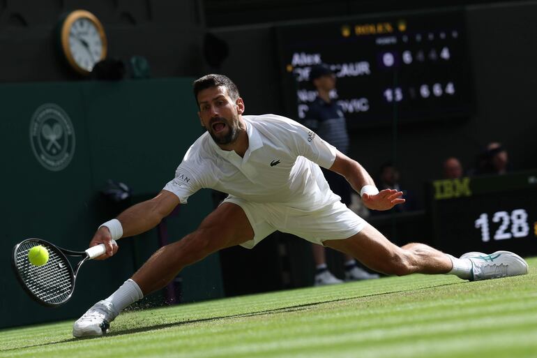 Un año después, De Miñaur no perdió la ocasión de mostrarse ante la central de Wimbledon y llegó a tambalear los cimientos del intento de Djokovic de lograr su vigésimo quinto Grand Slam en un torneo que se le da de maravilla y en el que ha ganado 45 de sus últimos 43 partidos. Sus únicas derrotas, las últimas dos finales contra Carlos Alcaraz.