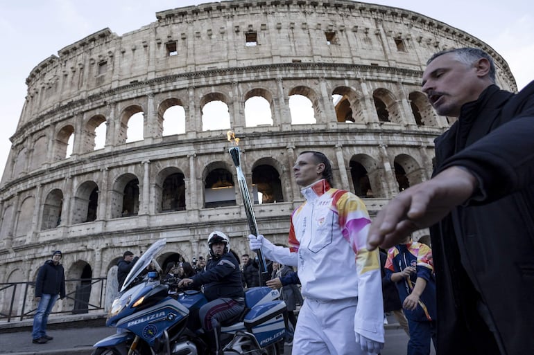 Desde el Estadio dei Marmi, en el Foro Itálico romano, la antorcha comenzó un trayecto que involucrará solo en la jornada de hoy a un total de 164 portadores.