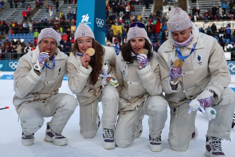El equipo galo, que fue campeón olímpico en PyeongChang 2018, medallista de plata hace cuatro años en Pekín 2022 y es doble campeón del mundo, confirmó en estos Juegos la potencia de su relevo mixto, con un 0+7 en tiro y un tiempo de 1:04.15.5, gracias a la remontada que protagonizaron Jeanmonnot y Simon.