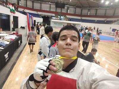 Juan Andrés tuvo una preparación de 2 meses para llegar con esfuerzo y dedicación a lo mas alto del podio del torneo de taekwondo WT, con la medalla de oro en su cuello, siendo el mejor en el tatami del COP, en el torneo que se desarrolló el fin de mes pasado.