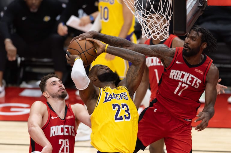 El veterano LeBron (41 años) lideró el nuevo triunfo angelino con 29 puntos, 13 rebotes y 6 asistencias en 45 minutos en el parquet del Toyota Center de Houston. Precisamente, merced a un triple de James, el juego fue a overtime, donde los Lakers sumaron su tercer punto de los playoffs,