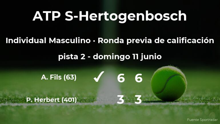Arthur Fils, francés, número 63 de la ATP, cumplió los pronósticos al ganar en la ronda previa de calificación del torneo ATP 250 de 's-Hertogenbosch por 6-3 y 6-3 al jugador francés Pierre-Hugues Herbert, número 401 de la ATP. Con este triunfo, Fils consigue sumar nuevos puntos a su ranking para entrar en el torneo ATP 250 de 's-Hertogenbosch.
