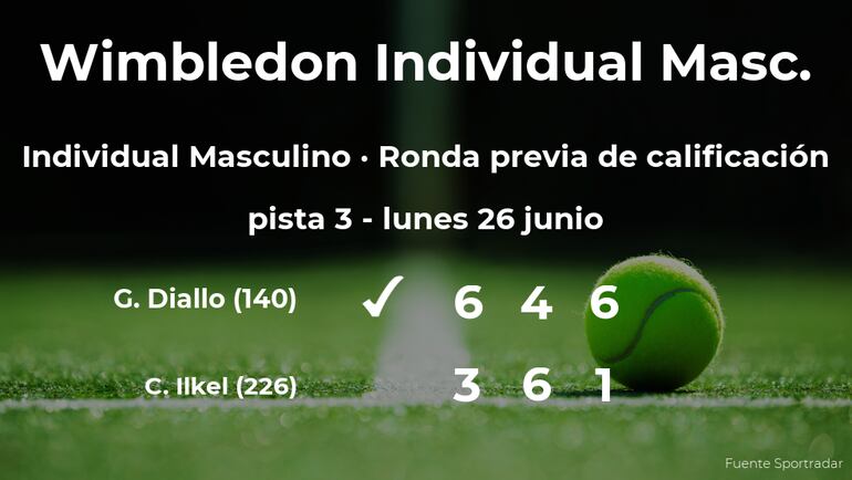 El tenista canadiense Gabriel Diallo, número 140 de la ATP, cumplió las previsiones al vencer en la ronda previa de calificación de Wimbledon por 6-3, 4-6 y 6-1 en una hora y cincuenta y siete minutos a Cem Ilkel, tenista turco, número 226 de la ATP. Tras este resultado, el ganador estará en la siguiente fase de Wimbledon.