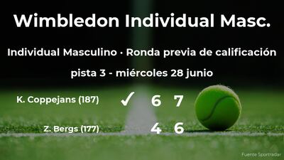 Kimmer Coppejans, belga, número 187 de la ATP, dio la campanada al ganar en la ronda previa de calificación de Wimbledon por 6-4 y 7(7)-6(4) en dos horas y cincuenta y siete minutos al tenista belga Zizou Bergs, número 177 de la ATP. Tras este resultado, el ganador añade nuevos puntos a su ranking para llegar a participar en el Campeonato de Wimbledon.