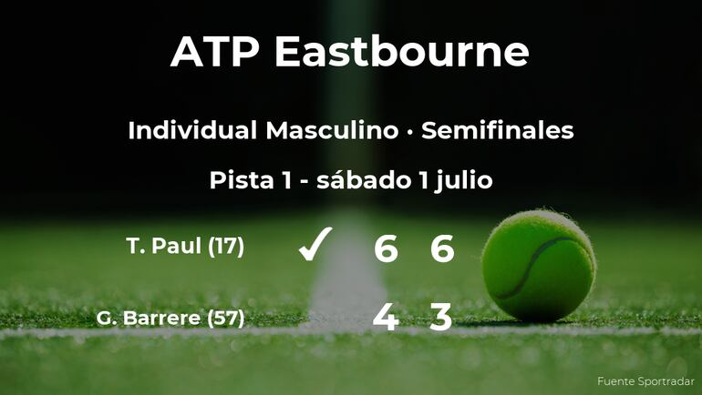 Tommy Paul, estadounidense, número 17 de la ATP y cabeza de serie número 2, cumplió las previsiones al vencer en las semifinales del torneo ATP 250 de Eastbourne por 6-4 y 6-3 en una hora y dieciséis minutos al jugador francés Gregoire Barrere, número 57 de la ATP. Con este resultado, podremos seguir viendo al vencedor del partido en la final del torneo ATP 250 de Eastbourne.