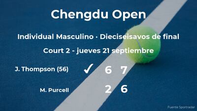 Jordan Thompson, australiano, número 56 de la ATP, venció en los dieciseisavos de final del torneo de Chengdu por 6-2 y 7(10)-6(8) al australiano Max Purcell y cabeza de serie número 6. Con este resultado, veremos al vencedor del partido en los octavos de final del torneo de Chengdu.