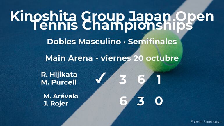 Los jugadores australianos Rinky Hijikata y Max Purcell, número 70 de la ATP y, número 40 de la ATP respectivamente ganaron en las semifinales del torneo de Tokio por 3-6, 6-3 y 1-0 a Marcelo Arévalo y Jean-Julien Rojer. Con este resultado, la pareja consigue la plaza para la siguiente ronda del torneo de Tokio.
