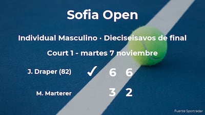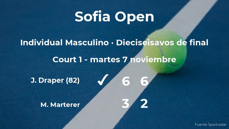 El británico Jack Draper, número 82 de la ATP, venció en los dieciseisavos de final del torneo de Sofía por 6-3 y 6-2 a Maximilian Marterer, tenista. Tras este resultado, el ganador estará en los octavos de final del torneo de Sofía.
