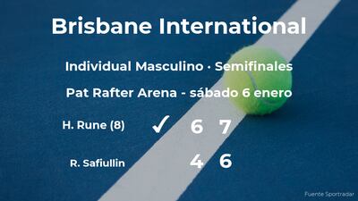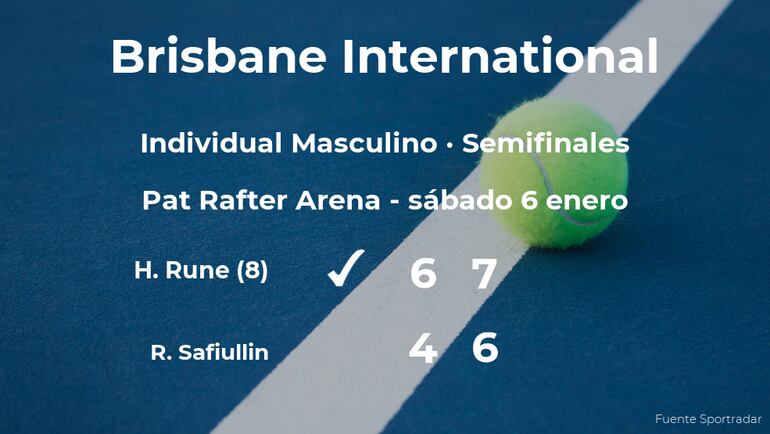Holger Rune,, número 8 de la ATP y cabeza de serie número 1, venció por 6-4 y 7(7)-6(0) a Roman Safiullin, tenista ruso en las semifinales del torneo de Brisbane. Con este resultado, seguiremos viendo al ganador del partido en la siguiente fase del torneo de Brisbane.