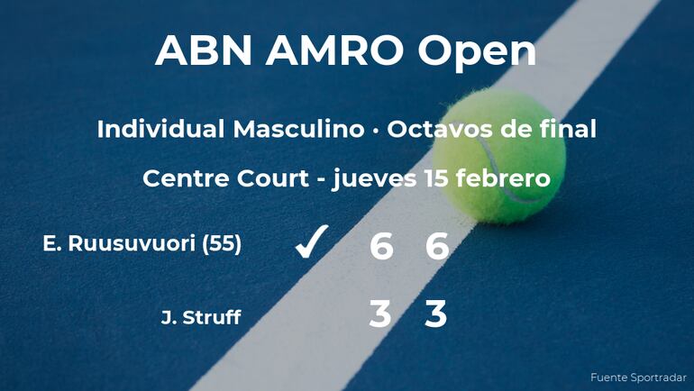 Emil Ruusuvuori, finlandés, número 55 de la ATP, ganó en los octavos de final del torneo de Rotterdam por 6-3 y 6-3 a Jan-Lennard Struff, tenista. Con este resultado, podremos seguir viendo al ganador del partido en la siguiente fase del torneo de Rotterdam, la siguiente fase.