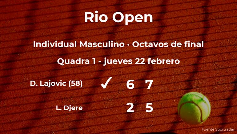 Dušan Lajovic, serbio, número 58 de la ATP, venció en los octavos de final del torneo de Río de Janeiro por 6-2 y 7-5 a Laslo Djere, tenista serbio y cabeza de serie número 6. Con este resultado, el jugador estará en la siguiente ronda del torneo de Río de Janeiro.