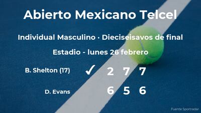 El estadounidense Ben Shelton, número 17 de la ATP, ganó en los dieciseisavos de final del torneo de Acapulco por 2-6, 7-5 y 7(7)-6(5) a Daniel Evans, tenista británico. Con este resultado, seguiremos de cerca la trayectoria del jugador en los octavos de final del torneo.