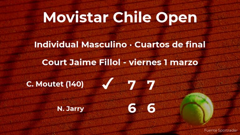 El francés Corentin Moutet, número 140 de la ATP, ganó en los cuartos de final del torneo de Santiago por 7(7)-6(5) y 7(7)-6(3) a Nicolás Jarry, tenista y cabeza de serie número 1. Con este resultado, podremos seguir viendo al vencedor del partido en la siguiente ronda del torneo de Santiago.