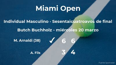 El italiano Matteo Arnaldi, número 38 de la ATP, venció en los sesentaicuatroavos de final del torneo de Miami Gardens por 6-3 y 6-4 al tenista francés Arthur Fils. Con este resultado, podremos seguir viendo al ganador del partido en la siguiente fase del torneo de Miami Gardens, los treintaidosavos de final.