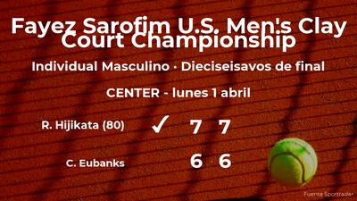 Rinky Hijikata, australiano, número 80 de la ATP, venció en los dieciseisavos de final del torneo de Houston por 7(7)-6(4) y 7(7)-6(2) a Christopher Eubanks, tenista estadounidense y cabeza de serie número 5. Tras este resultado, podremos seguir viendo al vencedor del partido en los octavos de final del torneo de Houston.