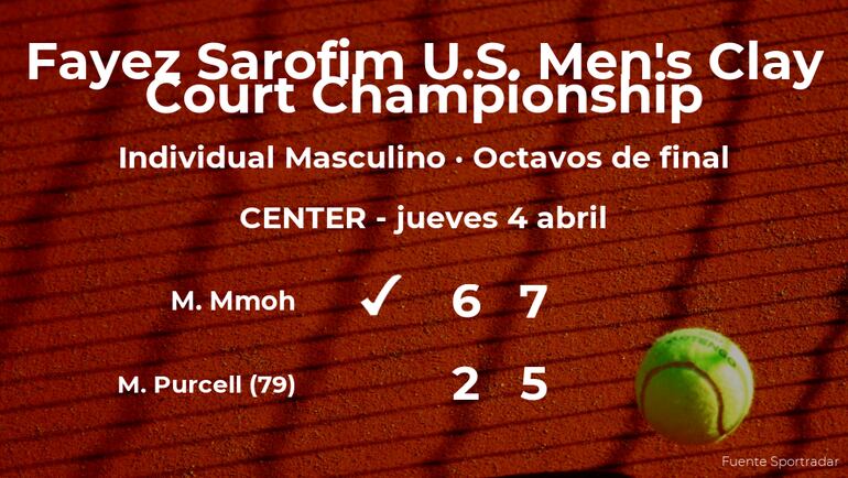 Michael Mmoh, estadounidense ganó por 6-2 y 7-5 a Max Purcell, tenista australiano, número 79 de la ATP y cabeza de serie número 8, en los octavos de final del torneo de Houston. Tras este resultado, podremos seguir viendo al ganador del partido en la siguiente ronda del torneo de Houston.