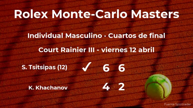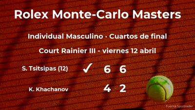 Stefanos Tsitsipas,, número 12 de la ATP y cabeza de serie número 12, venció por 6-4 y 6-2 a Karen Khachanov, tenista ruso y cabeza de serie número 15, en los cuartos de final del torneo de Monte Carlo. Con este resultado, seguiremos viendo al vencedor del partido en la siguiente fase del torneo de Monte Carlo.