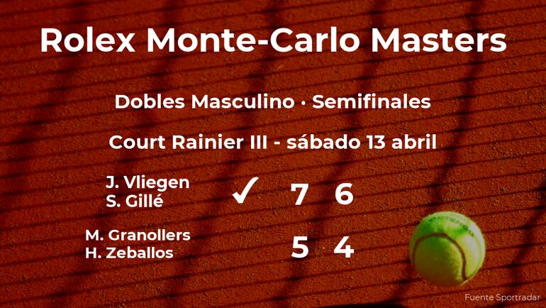 Los jugadores belgas Joran Vliegen y Sander Gillé vencieron en las semifinales del torneo de Monte Carlo por 7-5 y 6-4 al tenista español Marcel Granollers y al tenista argentino Horacio Zeballos. Tras este resultado, podremos seguir viendo a la pareja ganadora en la siguiente ronda del torneo de Monte Carlo.