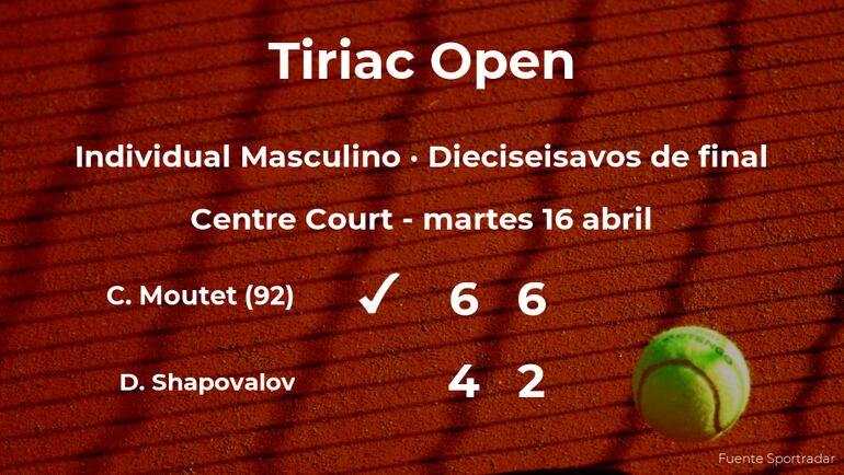 Corentin Moutet, francés, número 92 de la ATP, ganó en los dieciseisavos de final del torneo de Bucarest por 6-4 y 6-2 a Denis Shapovalov, tenista canadiense. Tras este resultado, veremos al ganador del partido en los octavos de final del torneo de Bucarest.