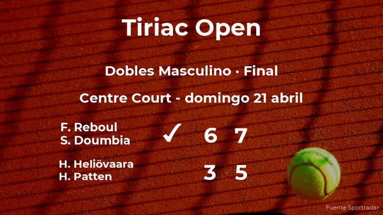 Los jugadores franceses Fabien Reboul y Sadio Doumbia ganaron en la final del torneo de Bucarest por 6-3 y 7-5 al jugador finlandés Harri Heliövaara y al jugador británico Henry Patten. Con este resultado, los jugadores son los nuevos campeones del torneo de Bucarest.