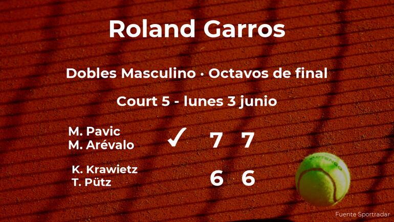 Mate Pavic y Marcelo Arévalo ganaron por 7(7)-6(3) y 7(7)-6(5) a Kevin Krawietz y Tim Pütz en los octavos de final del torneo de París. Con este resultado, veremos a los ganadores del partido en la siguiente fase del torneo de París, los cuartos de final.