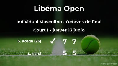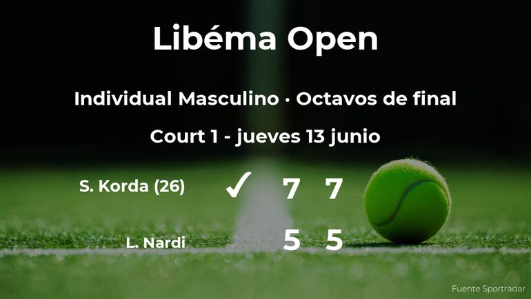 Sebastian Korda, estadounidense, número 26 de la ATP y cabeza de serie número 7, ganó en los octavos de final del torneo de Rosmalen por 7-5 y 7-5 a Luca Nardi, tenista italiano. Tras este resultado, Korda consigue la plaza para la siguiente fase del torneo de Rosmalen.